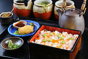 下町の喧噪を忘れるような不思議な空間。まちあるきのあとの、落ち着いたひとときを古民家風たたずまいの吉里でお過ごしください。いつも予約で満席の人気店。目にも楽しい松花堂弁当に会話もひときわ弾みます。