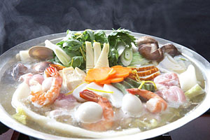 神楽坂の名物、名代「うどんすき」を召し上がっていただきたくて、神楽坂コースは冬に設定しています。極太うどんの小麦は、北海道(旭川産)稀少品種をベースに季節により岩手、長野産を独自にブレンド。お出汁は、天然真昆布(利尻島、鴛泊)と本枯れ節(鹿児島、枕崎)を使い透明かつ繊細な味。厳選素材の17種の具材で上品に仕上げられた老舗の味をご堪能下さい。