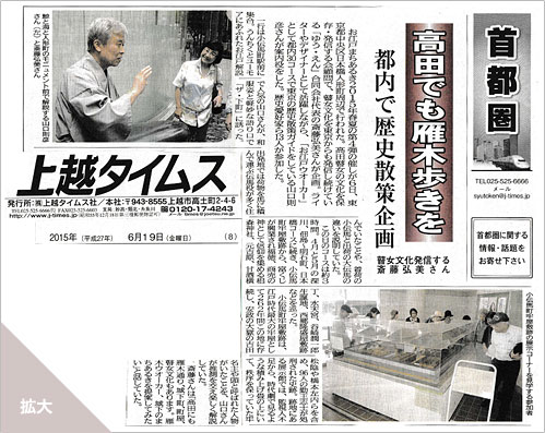新潟県上越市にある「上越タイムス・首都圏」にて、【ゆう・えん】の「お江戸まちあるき」を紹介いただきました。